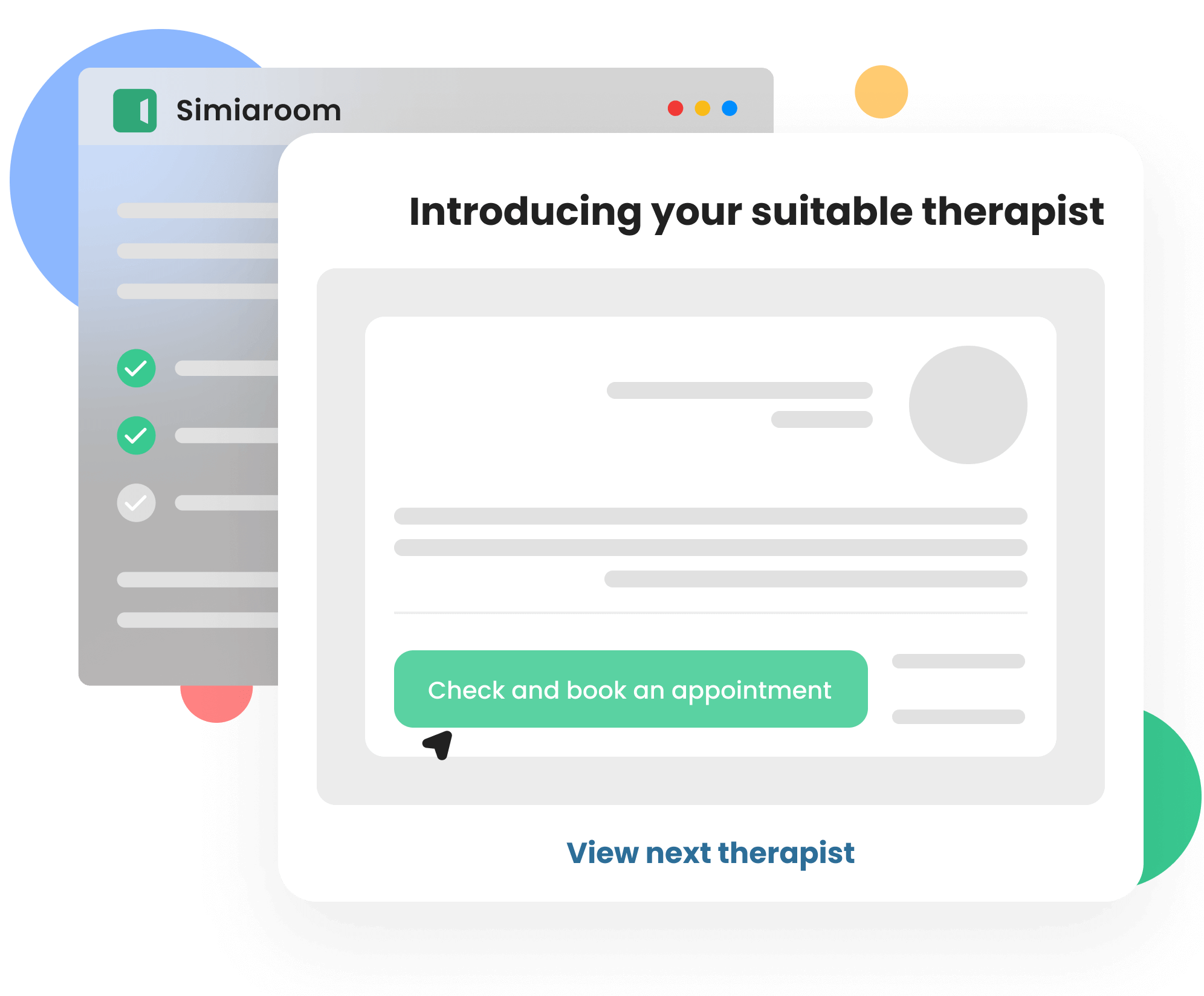با کمک سیستم هوشمند تطبیق و یا جلسه ارزیابی با کارشناسان سیمیاروم، درمانگری که دقیقاً با نیازهای شما هم‌خوانی دارد، به شما پیشنهاد می‌شود.